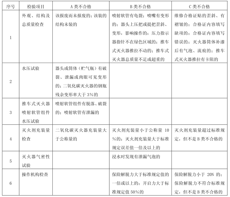 滅火器檢驗不合格分類表
